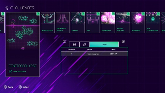 But the games true joy is found in its challenge mode. Which to me is the main story of the game. These challenges require you to for example "survive 120 seconds" and trust me... it humbles you with challenge. Hitting scorpions through tiny openings without hitting mushrooms is brutal. It requires the player to really master the timing. It feels nostalgic in its difficulty. Starting simple then requiring mastering of the algorithm and npc to really guage what order to do things. The premise of centipede is simple. Kill centipede in an endless loop to raise the high score. But the new game adds depth to that making you build up skillsets for challenges... and it is one of the harder games ive beaten in recent memory but also doable. A perfect balance of "screw you" but also "have a nice day" lol.