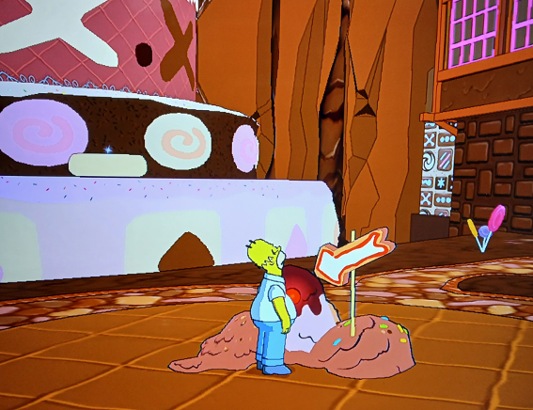 But overall I disagree with the sentiment that the game functions better as a epsiode of the simpsons than it does a simpsons game. I had a lot of fun with the colorful worlds within the springfield which also is loaded with collectibles to find.  The enemies, bosses and overall depth of the thing is vast for licensed game based on a tv adult cartoon.  It's extremely hilarious and a sentimental piece of when I used to bond with my brother over it.  It's the first Gen 7 game I ever played. So that will always have a place in my heart. That grows colder with age. And warmer with each shrink of the backlog.  Its a floating, balling, saxxing good time. And I really enjoy it!