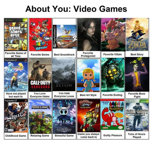 Template if anyone wants to make their own (2nd photo) - https://www.reddit.com/r/videogames/comments/w7rurr/about_you_video_games_my_answers_image_template/